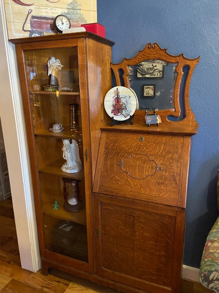 My heart swelled within me as I realized that I had passed by that cabinet all of my life. When my mother first carried me as a newborn baby into the home of her parents I would have passed by this very cabinet. When crawling I passed by this same cabinet, before I could talk I passed by it, when I took my first steps at “Little Grandmas” I would have walked by this precious cabinet now turned golden with the patina of years gone by.